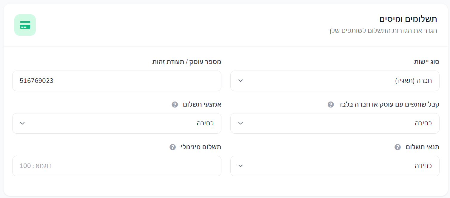 תשלום רק לשותפים עם מספר מס
