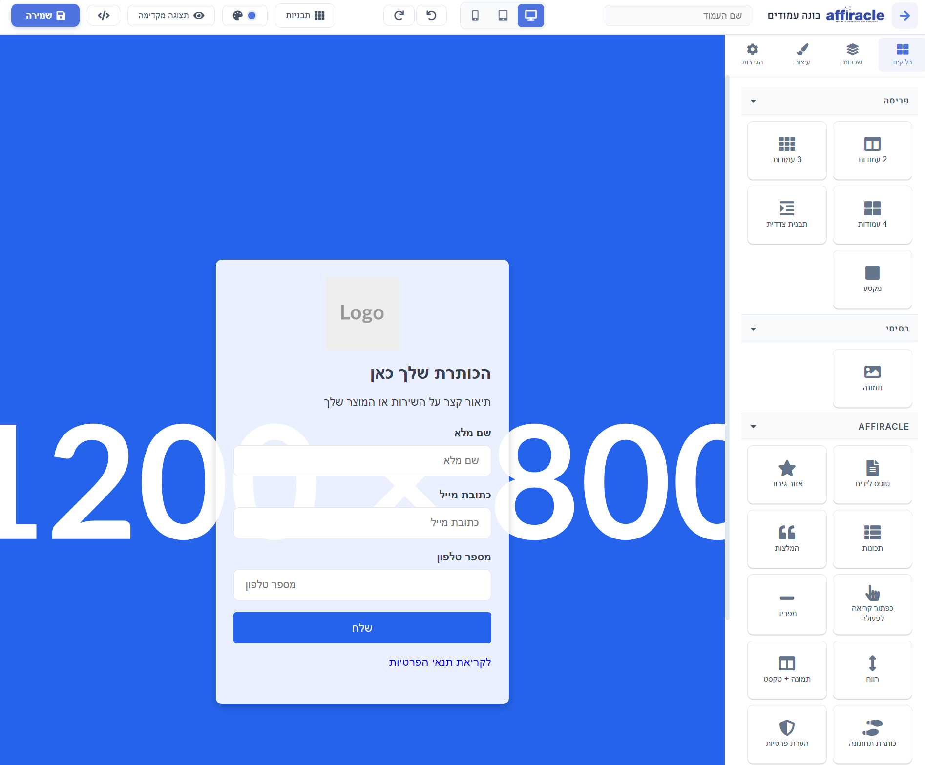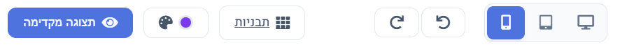 אפשר לעבור בין תצוגת מחשב, טאבלט ומובייל כדי לבדוק את העמוד לפני שמירה.